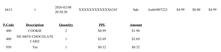 The first line shows transaction details such as the time and date, transaction ID and total collected. Don’t worry, none of the information I’m showing is personally identifiable, I wouldn’t leak people’s credit card numbers or anything like that.
